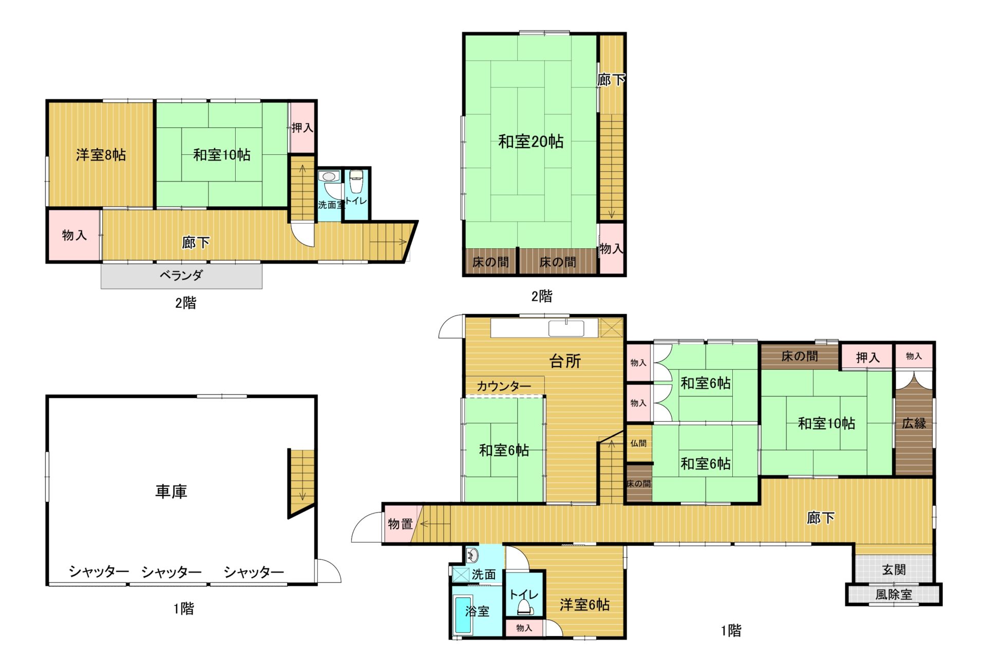 間取内容洋室7帖・8帖.,和室6畳×3・10畳・20畳、DK、